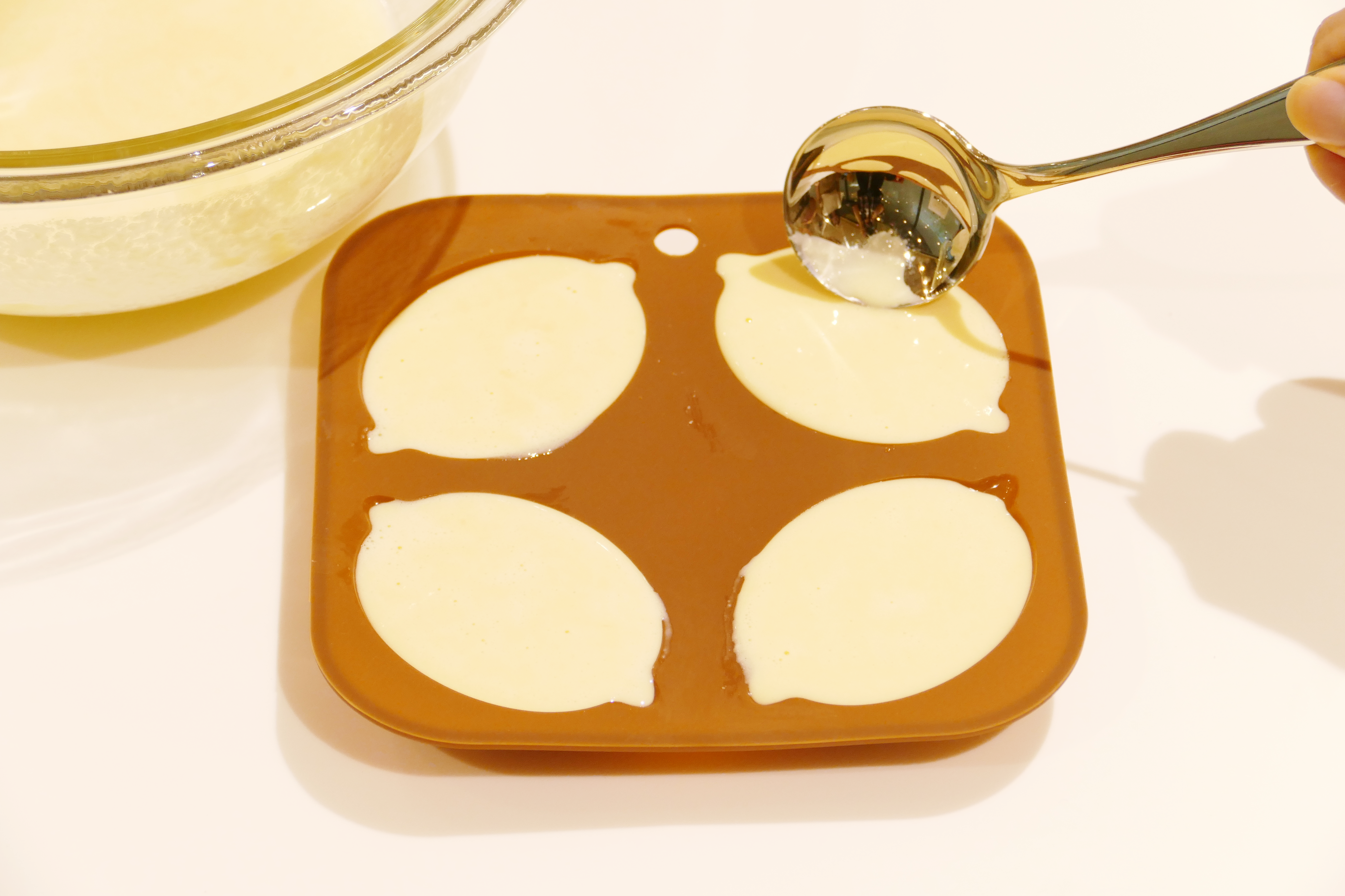 ①におからパウダー・ベーキングパウダー・レモン汁を加え、なめらかになるまで混ぜる。